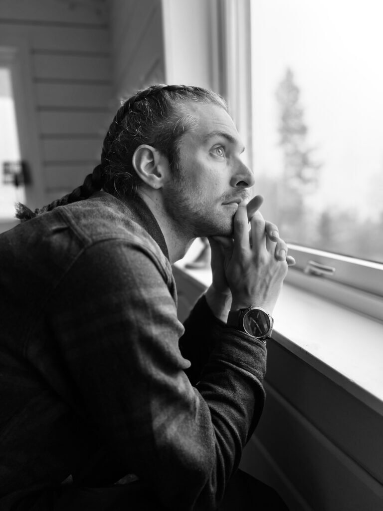 Die Muse schaut bei atmosphärischen Licht aus dem Fenster in sehnsuchtsvoller Erwartung auf unser Kommen.
